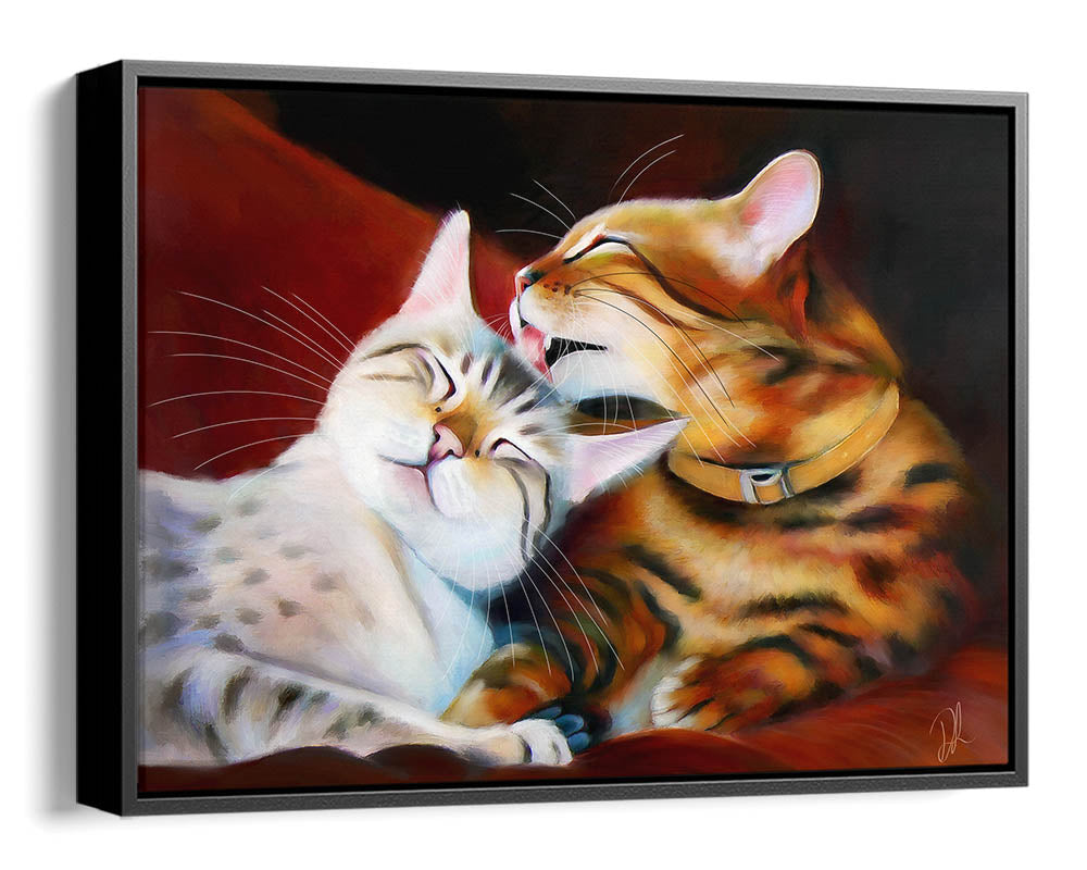 Printed as a framed canvas, the rich red browns, soft golds and warm earthy tones really come into their own, adding depth, texture and a cosy glow to the room. A lovely piece for cat lovers who enjoy art that feels loving and full of character.
