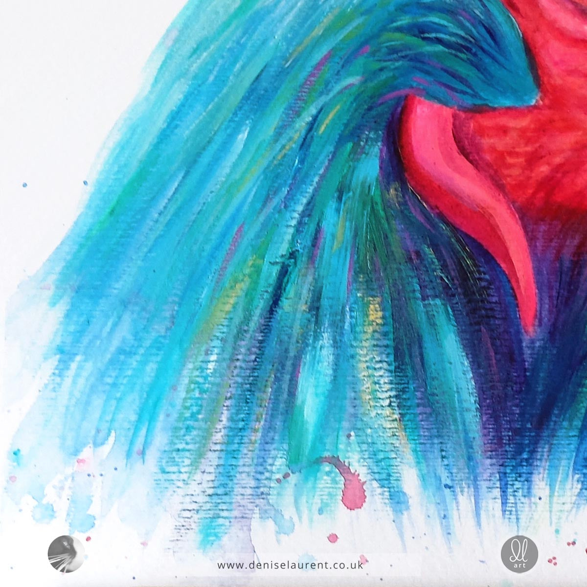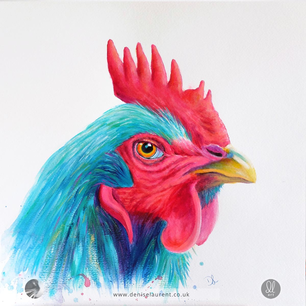 A blue hen with an orange eye. I’m calling her Sargent Peck because of the look in her eye, she looks like she could keep control of a flock with nothing but a stern glance.. There are pinks and reds in her comb and blues and teal greens in her feathers. She’s a very colourful hen.  Chickens are birds of real character.