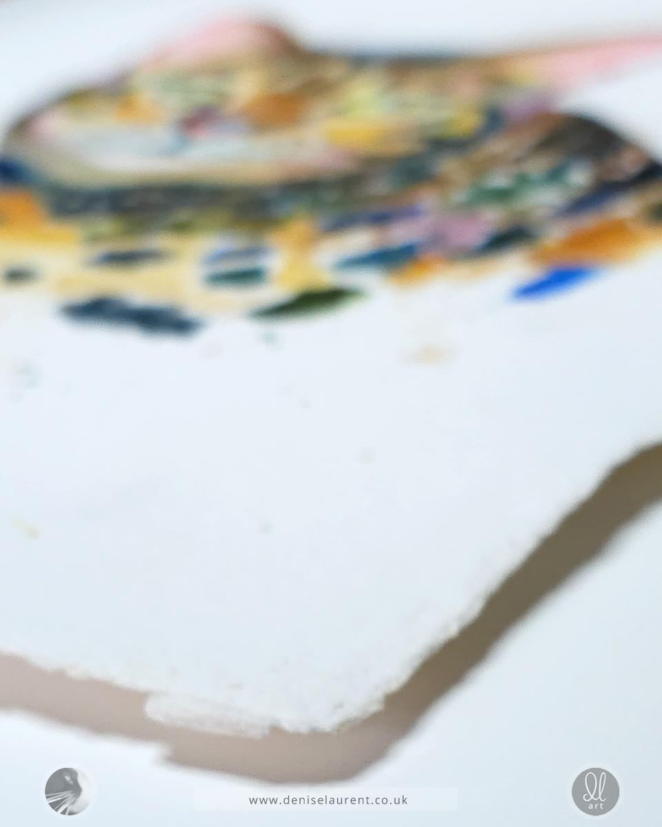Painted in fluid watercolour on handmade Two Rivers paper, the pigments move softly through the fibres, creating depth and atmosphere within her coat. Blues and warm oranges build the darker markings, giving her fur richness without heaviness.