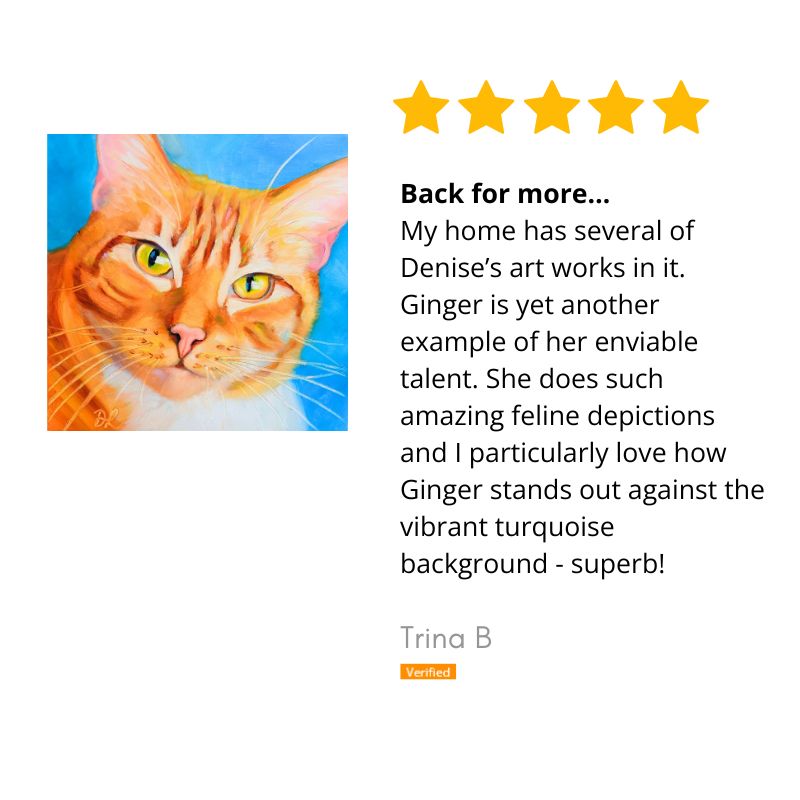 I love bringing animals to life on canvas, capturing their unique personalities in vibrant colours. If you're after a special pet portrait for yourself or as a thoughtful gift for a loved one I'll create a piece that will make you smile for years to come.