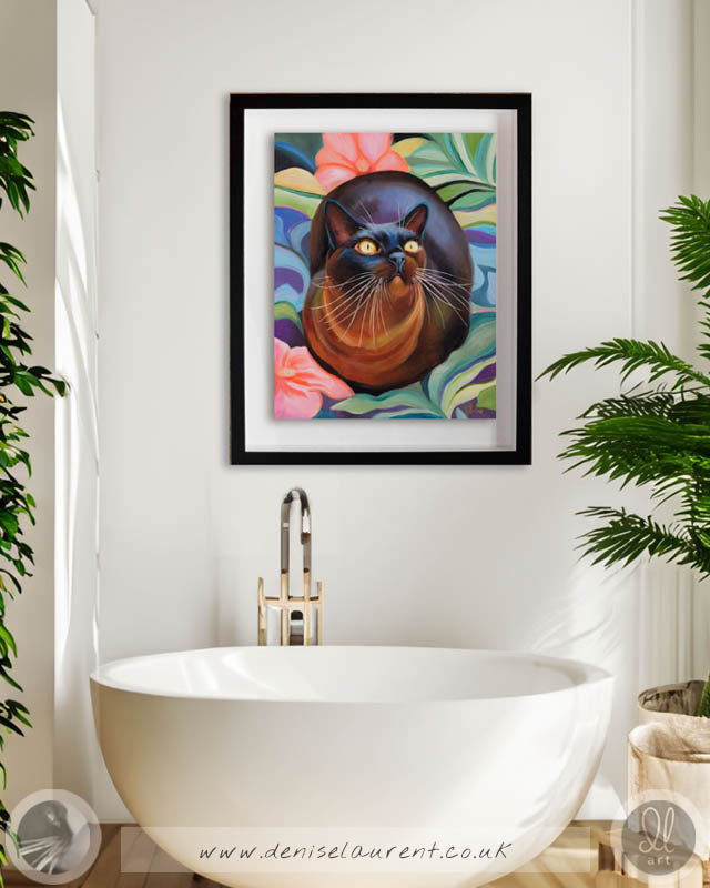 Elli and Rebel Yell, two Burmese cat prints with stories to tell. Elli is calm elegant and quietly confident. Rebel Yell fiery, colourful, full of personality. Together they capture everything we love about Burmese cats, grace, warmth, a little bit mischief.